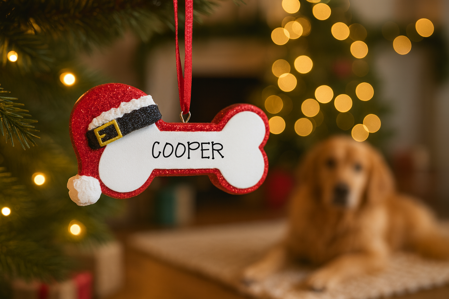 Dog Bowl Holiday Bone Personalized Christmas Ornament