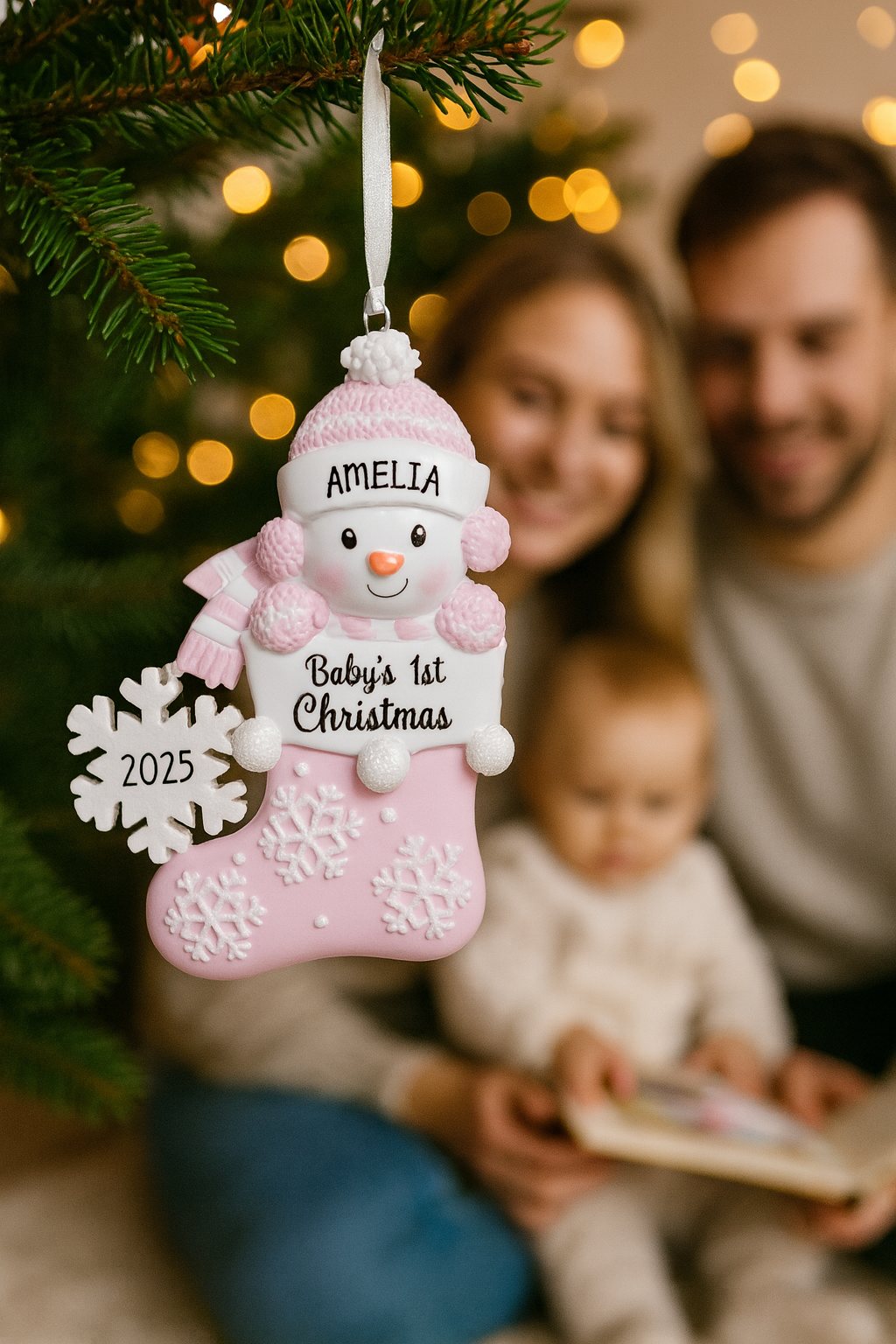 New Hot Cocoa Family of 3 Personalized Christmas Ornament