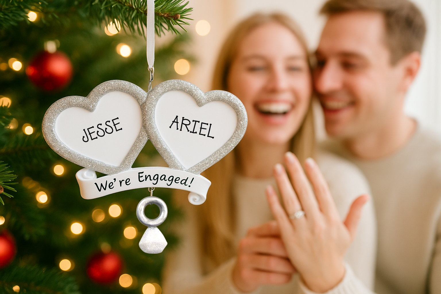 Sitting in Front of Fireplace Couple Personalized Christmas Ornament