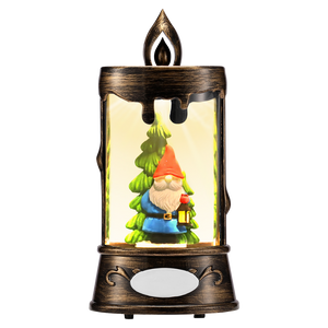 OGT0003-SNOW GLOBE ORNAMENT- GNOME & CHRISTMAS TREE IN CANDLE SHAPE SNOW GLOBE