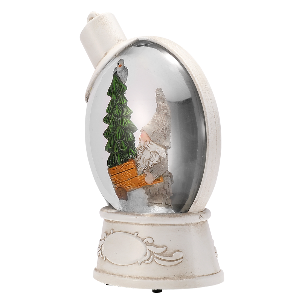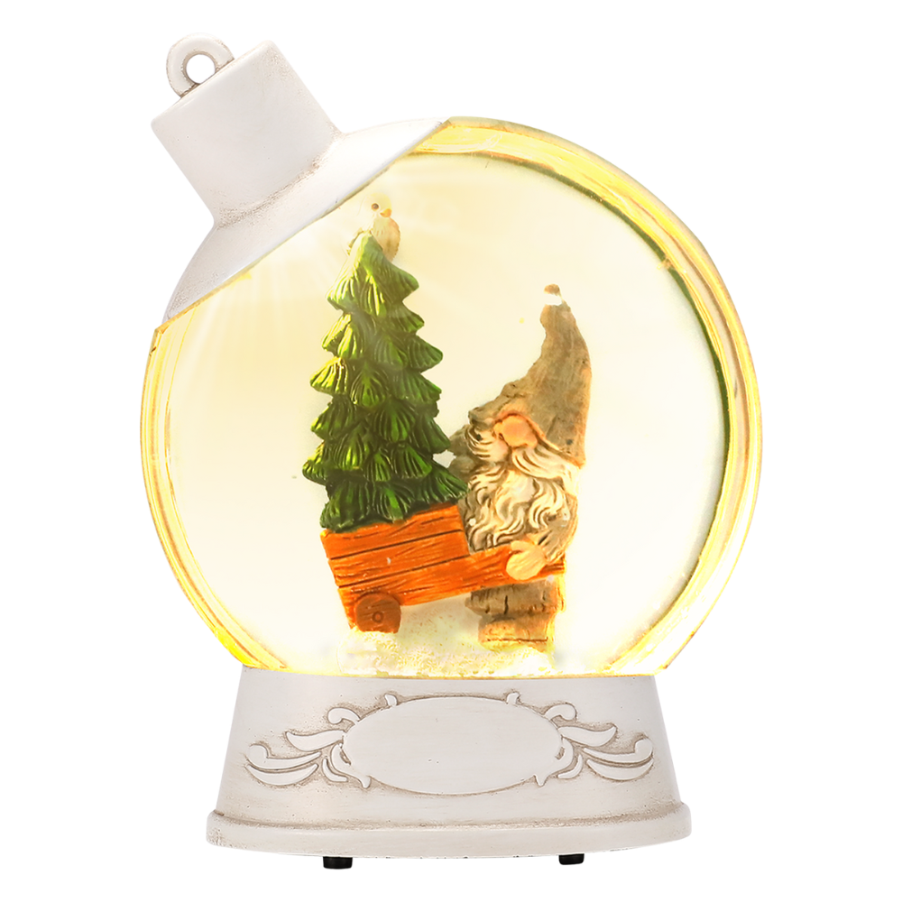 OGT0012-SNOW GLOBE ORNAMENT- GNOME IN WHITE CHRISTMAS BALL SHAPE SNOW GLOBE