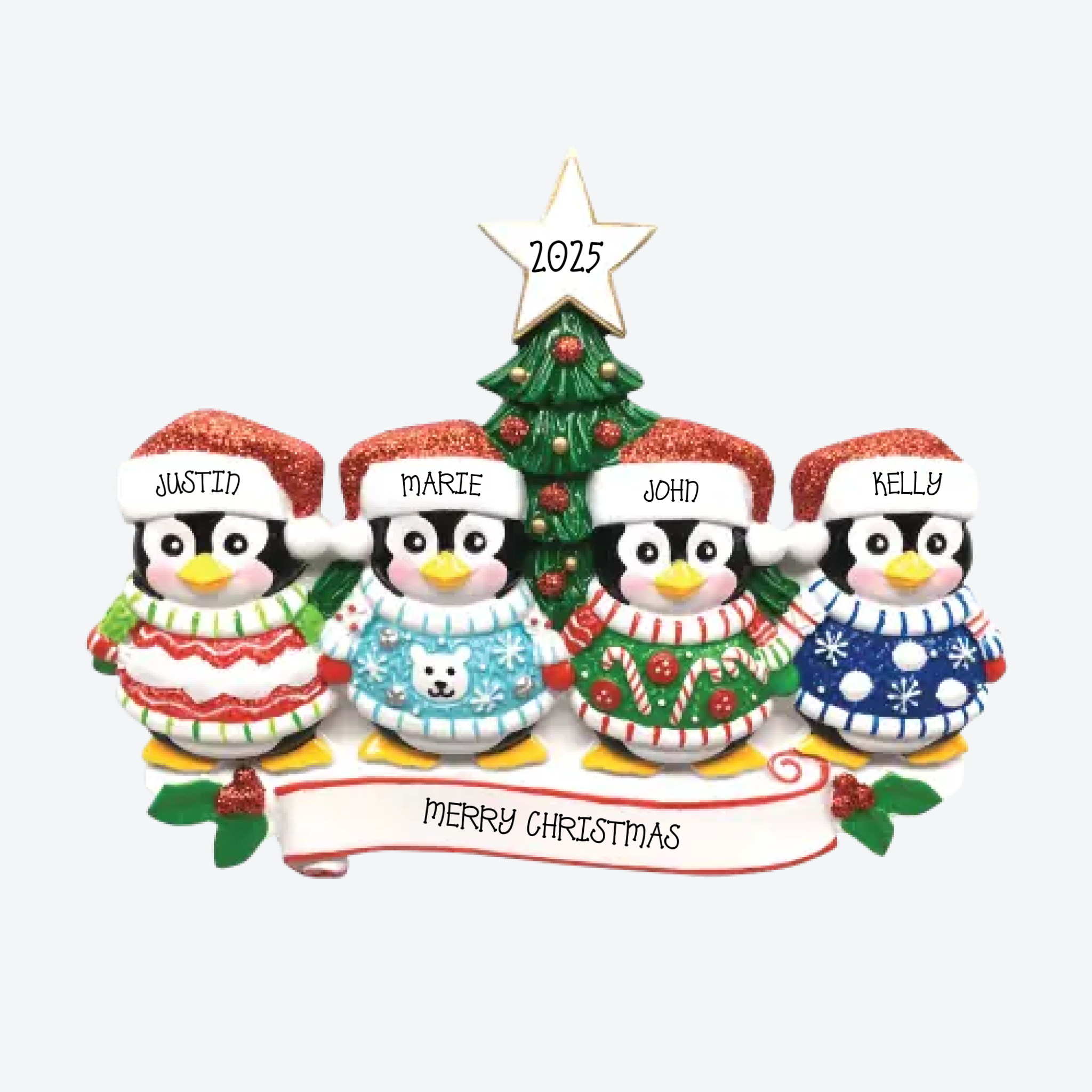OT1602-4 - Ugly Sweater Family of 4 Personalized Christmas Ornament