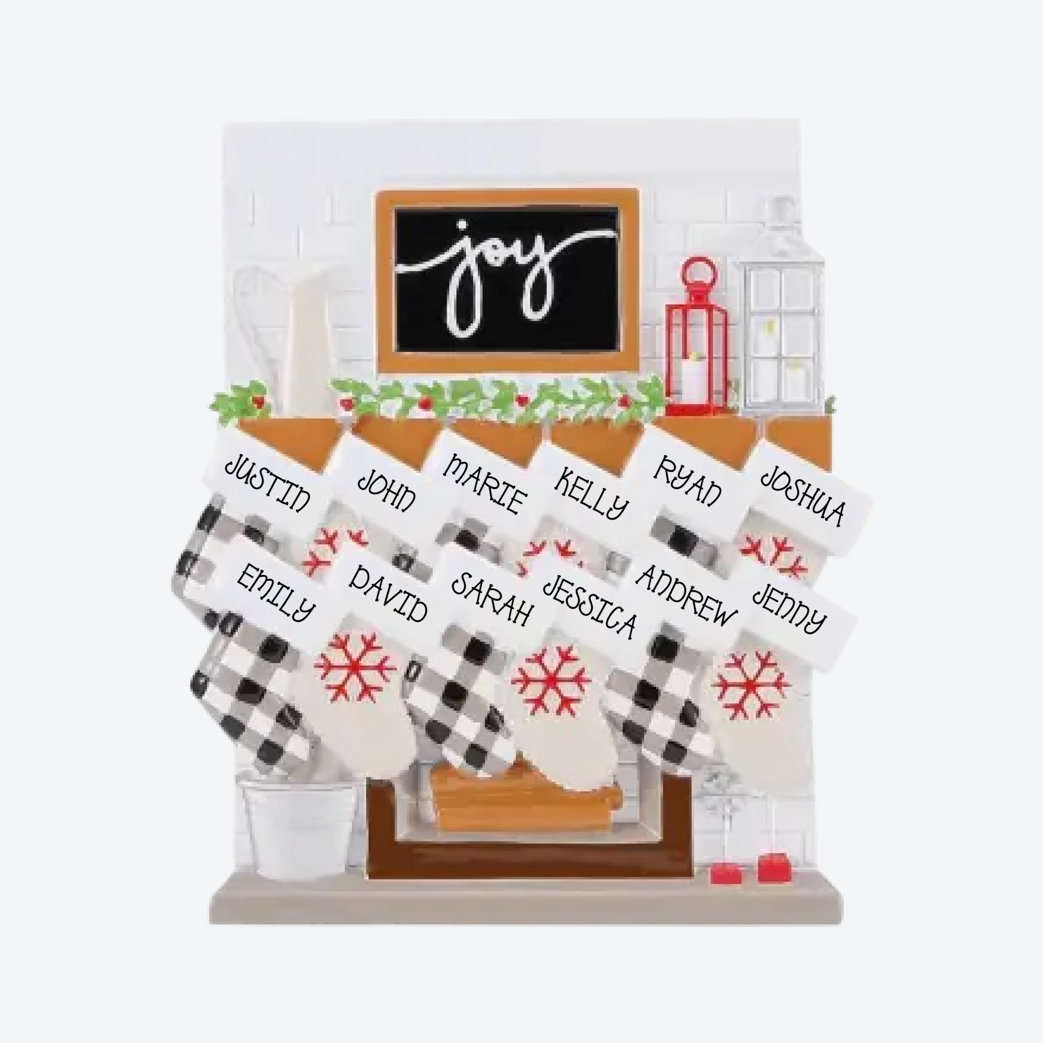 OT2030-12 - Fireplace Mantle Family of 12 Personalized Christmas Ornament