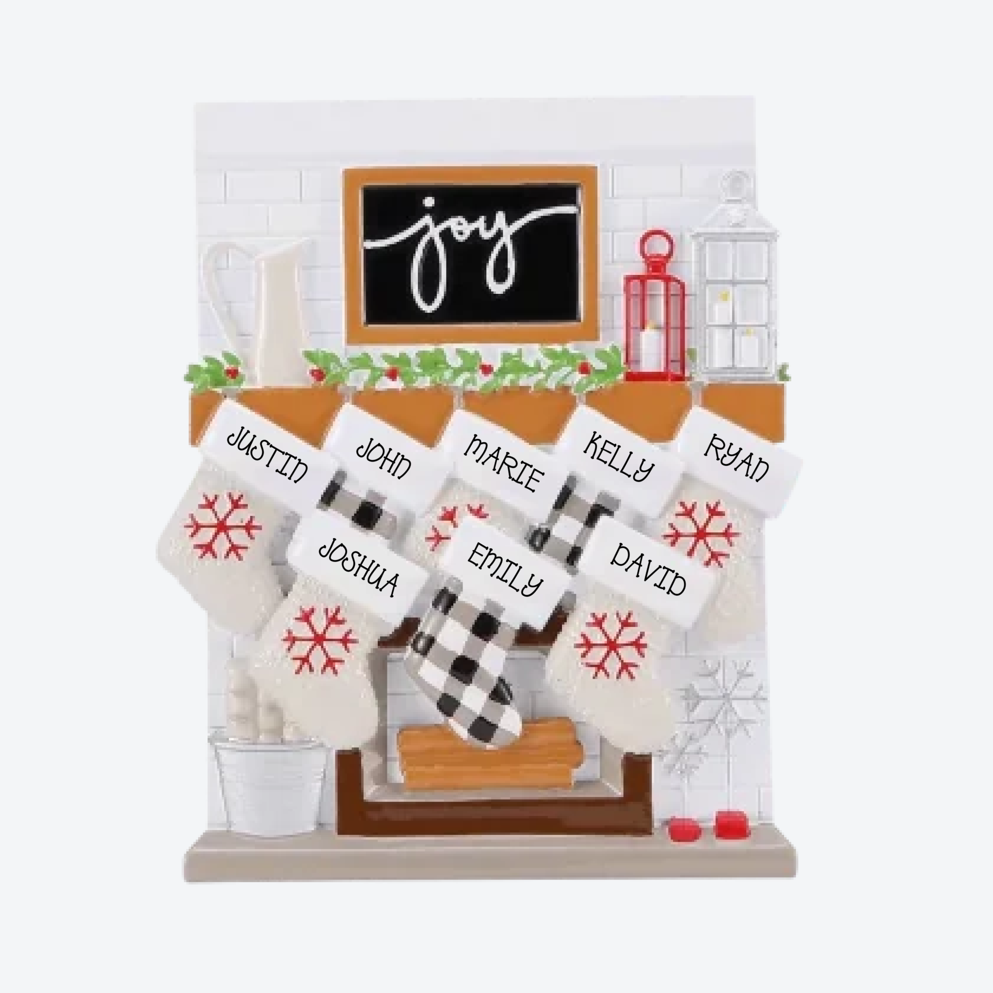OT2030-8 - Fireplace Mantle Family of 8 Personalized Christmas Ornament