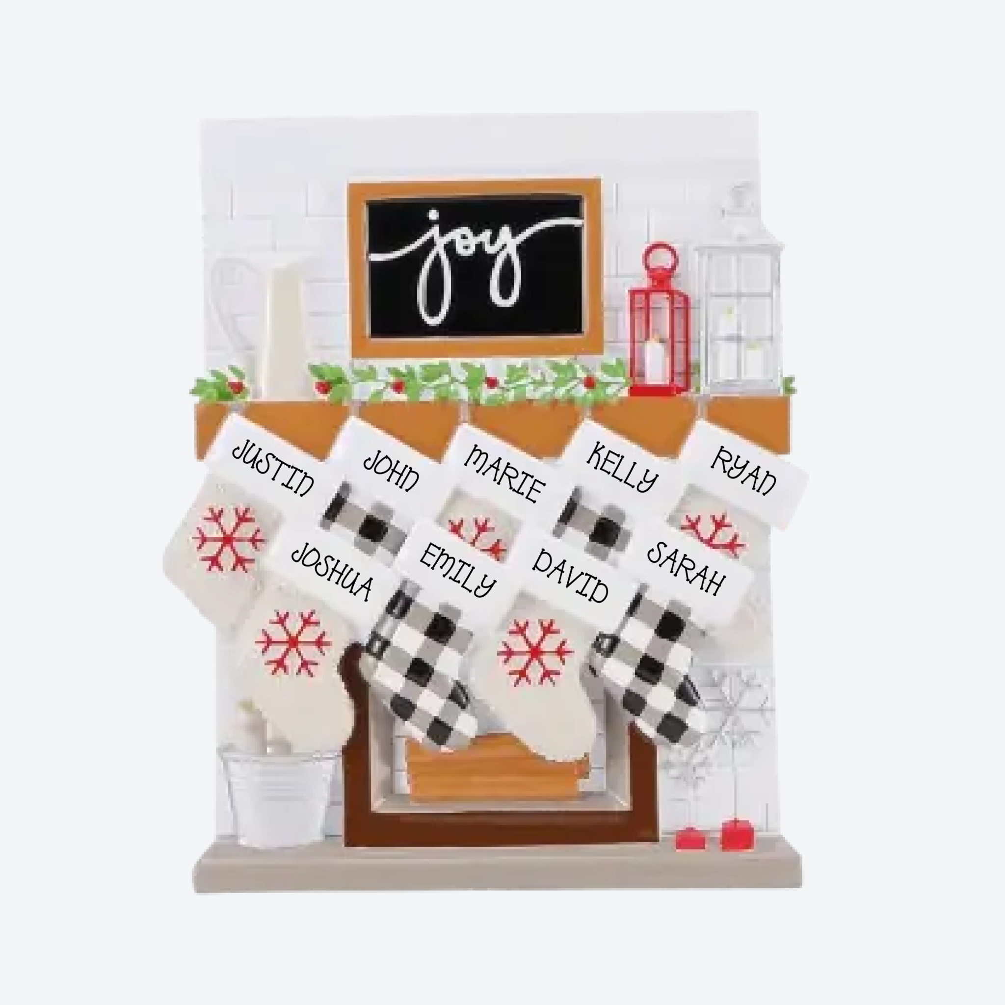 OT2030-9 - Fireplace Mantle Family of 9 Personalized Christmas Ornament